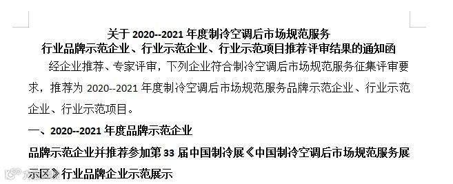 近日,中国冷协工程组委会发布《关于2020--2021年度制冷空调后市场规范服务行业品牌示范企业、行业示范企业、行业示范项目推荐评审结果的通知》,经企业推荐,专家评审,绿特国创凭借领先的技术实力、持续的创新能力及节能环保的产品优势荣获“节能服务示范企业”荣誉称号。