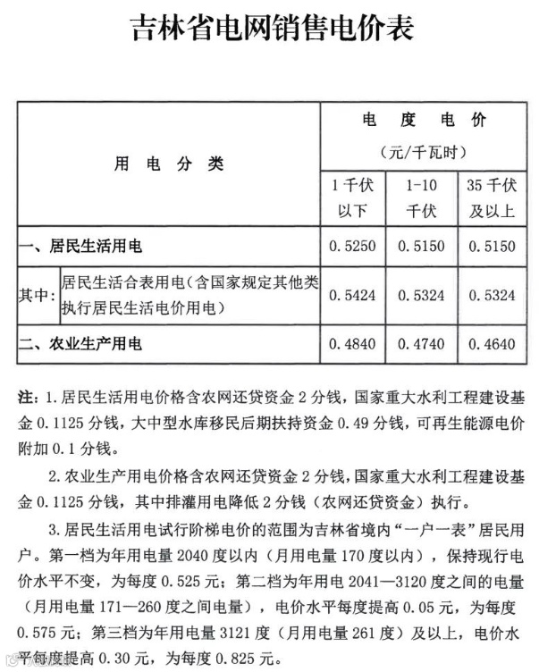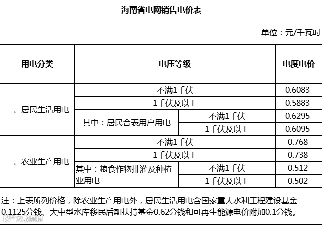 注:上表所列价格,居民生活用电和农业生产用电价格含国家重大水利工程建设基金0.1125分钱,居民生活用电价格含大中型水库移民后期扶持基金0.12分钱。