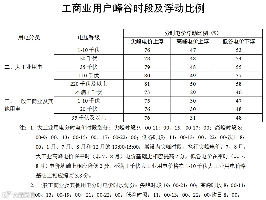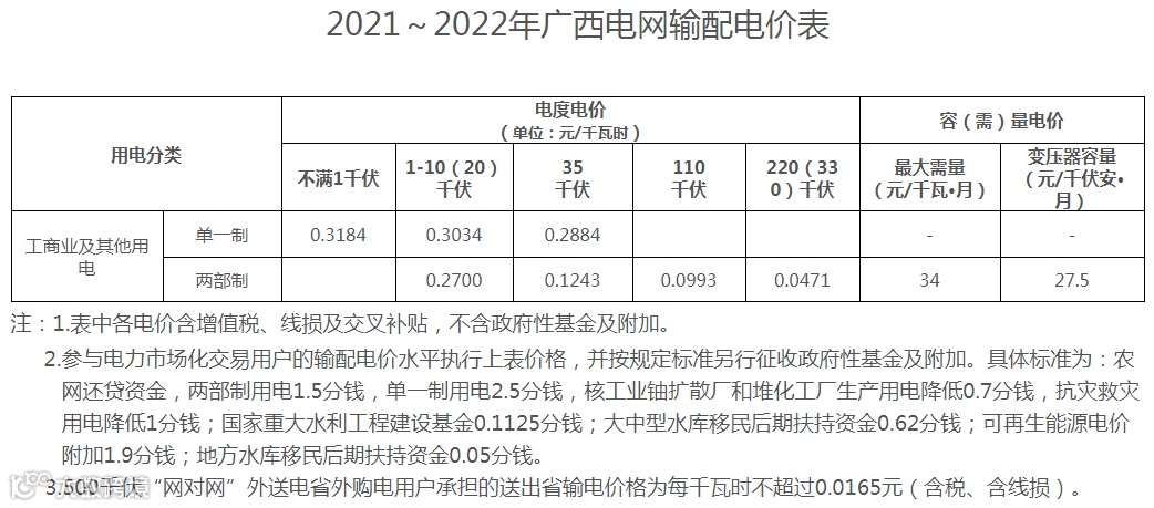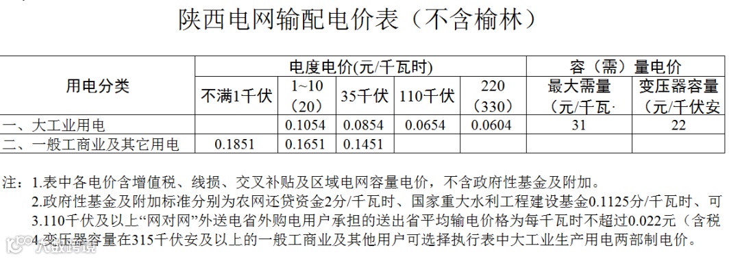 注:1、表中各电价含增值税、线损、交叉补贴及区域电网容量电价,不含政府性基金及附加。