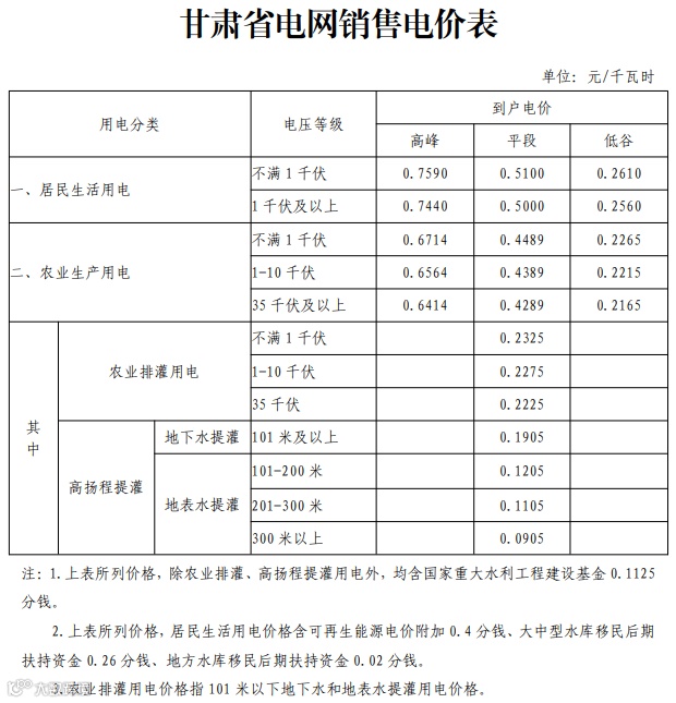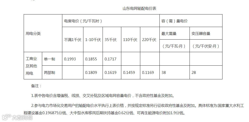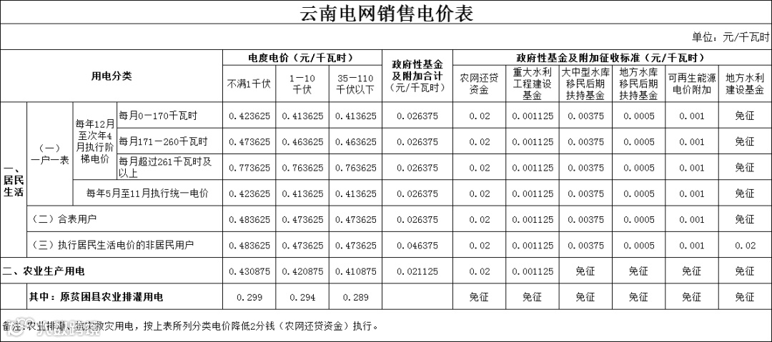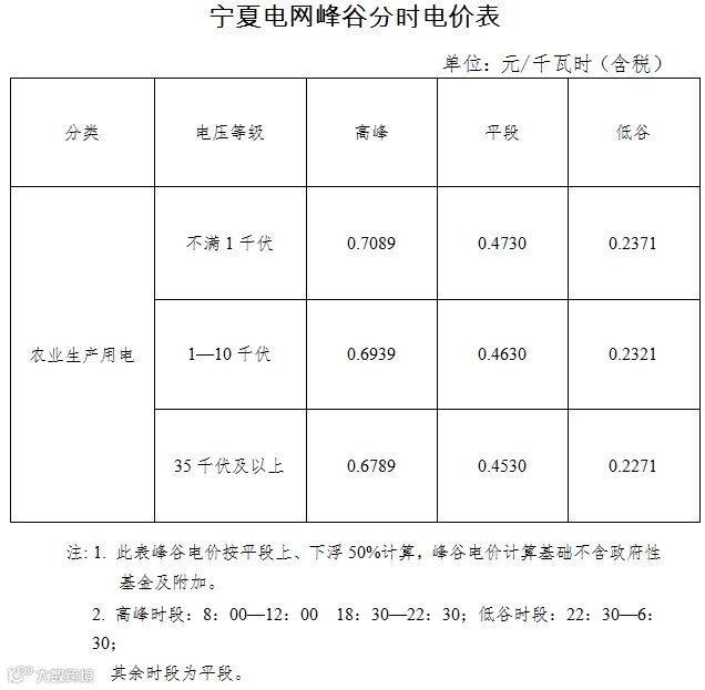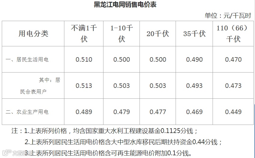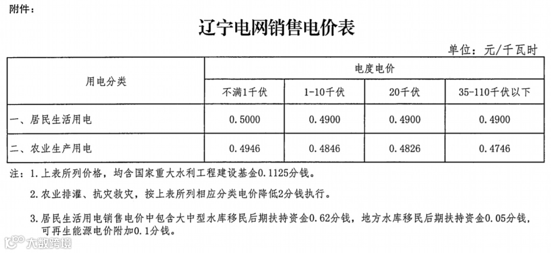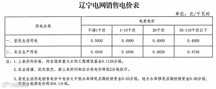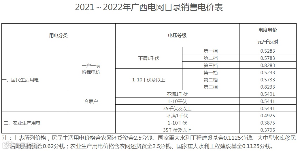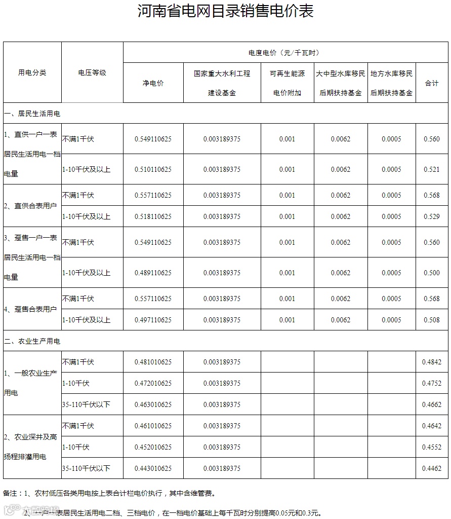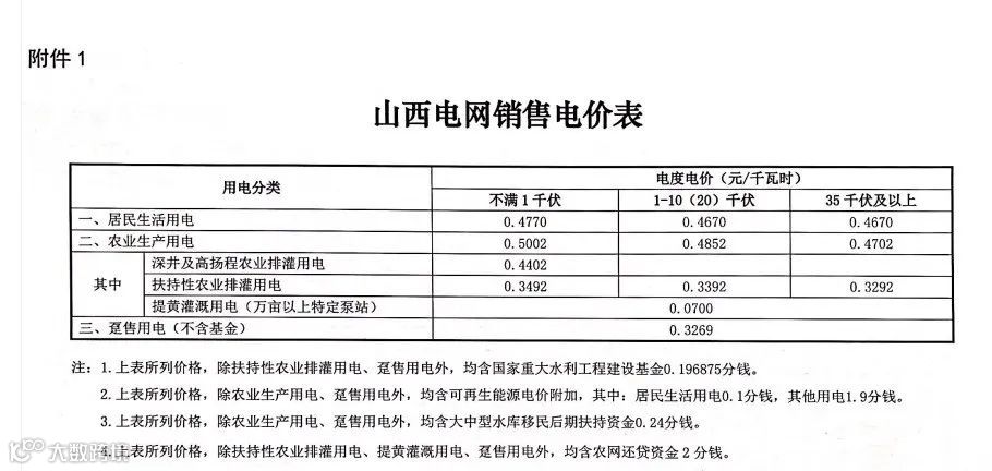 2、上表所列农业生产用电价格,含农网还贷资金2分/千瓦时、重大水利工程建设基金0.196875分/千瓦时。