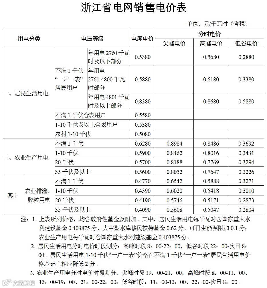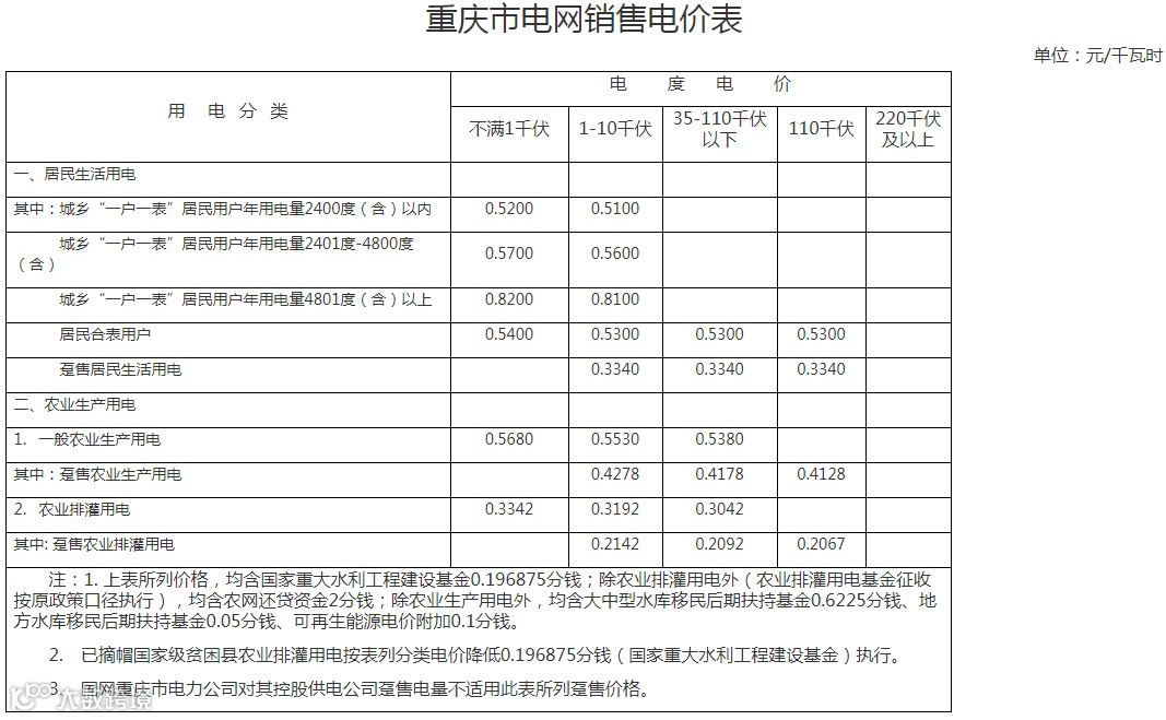 注:1、上表所列居民生活用电价格,含农网还贷资金2分/千瓦时、大中型水库移民后期扶持基金0.62分/千瓦时、重大水利工程建设基金0.196875分/千瓦时、可再生能源电价附加0.1分/千瓦时。