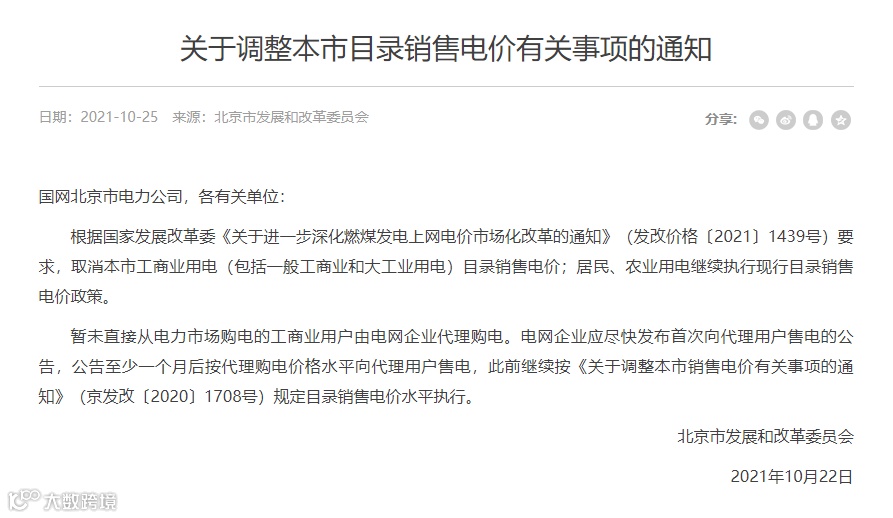 10月12日,国家发改委下发了《关于进一步深化燃煤发电上网电价市场化改革的通知》,要求工商业企业全部进市场。详见《新能源上网电价基准不变,参与交易浮动±20%》。由此,各省均开展了电价调整。
