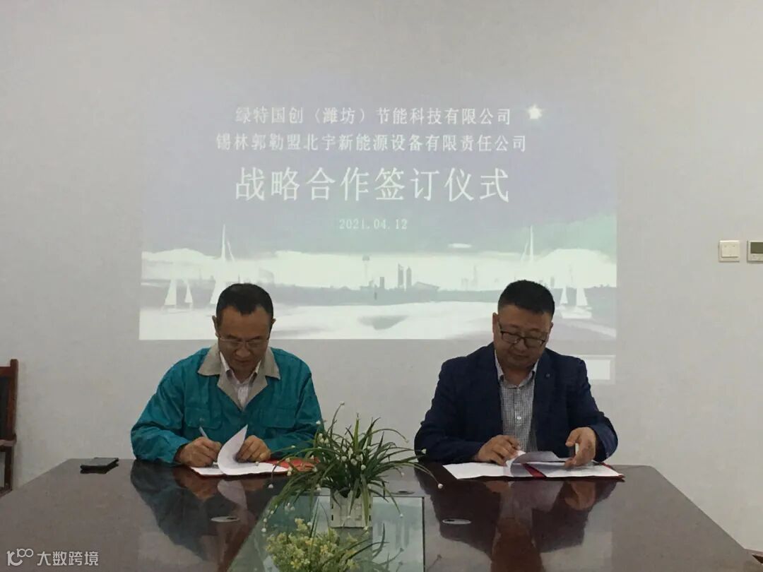 4月12日,绿特与北宇新能源战略合作签约仪式在绿特公司隆重举行,绿特董事长王泽富、北宇新能源杨总共同出席了签约仪式。