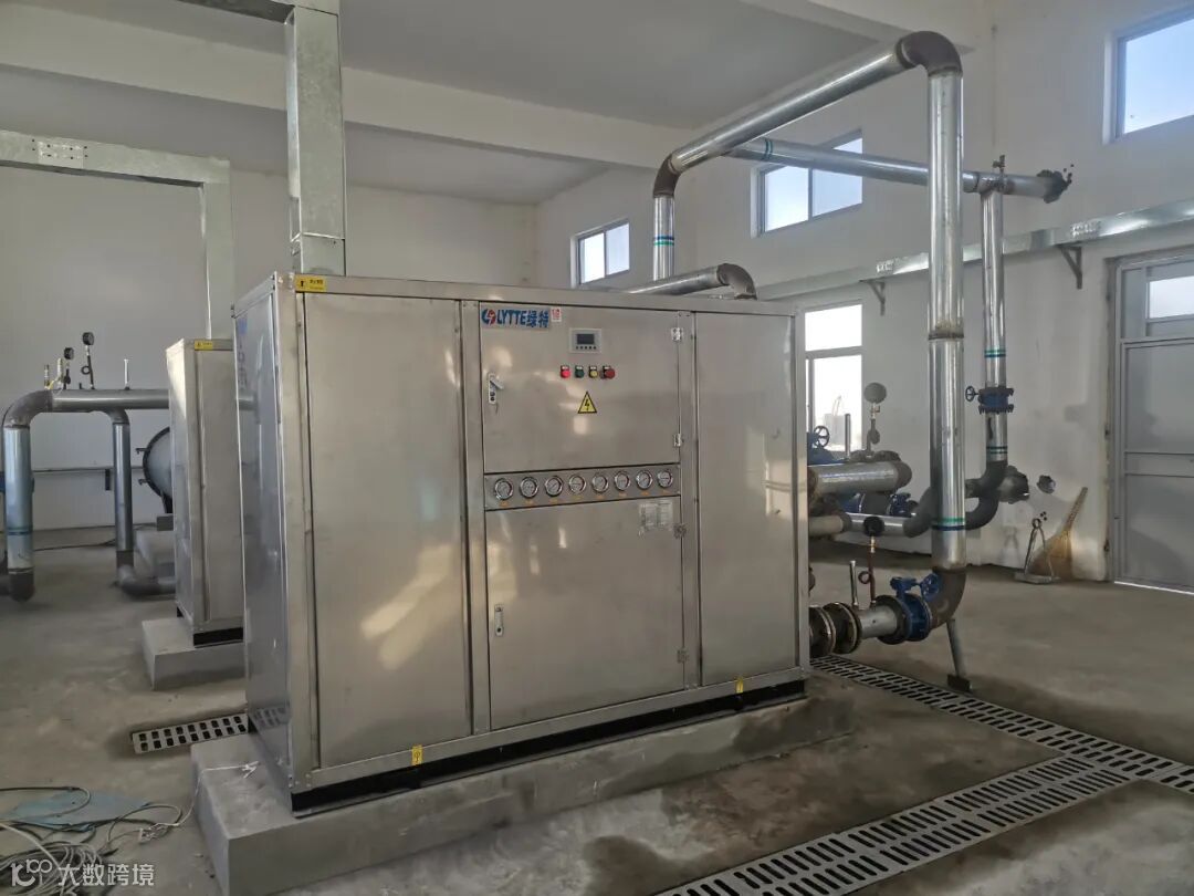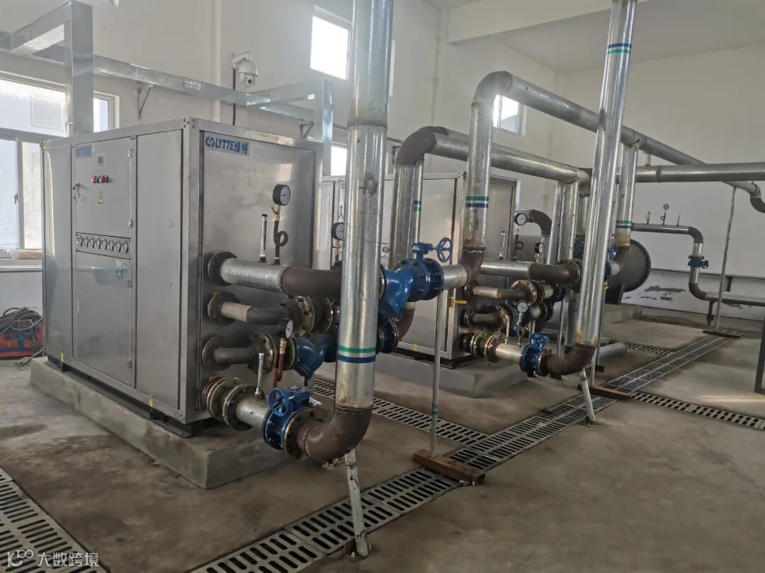 该项目在污水进厂的总进水口建设采集系统,直接利用污水泵将未处理过的原生污水输送到一台强制湍流多通道污水换热器进行热量交换。换热后干净中介水再进两台污水源热泵进行高温热水的制取。