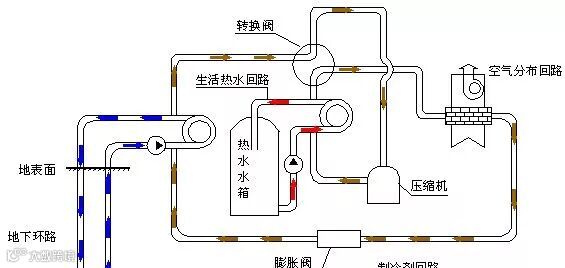 地源热泵技术是一种利用地热资源,如土壤、地下水或河流、湖泊中吸收储存的太阳能、地热能,通过输入少量高品位能源,实现低品位热能向高品位热能转移,从而对室内供暖的高效节能空调技术。根据换热介质的不同,地源热泵系统一般分为地表水源热泵、地下水源热泵、污水源热泵和土壤源热泵。