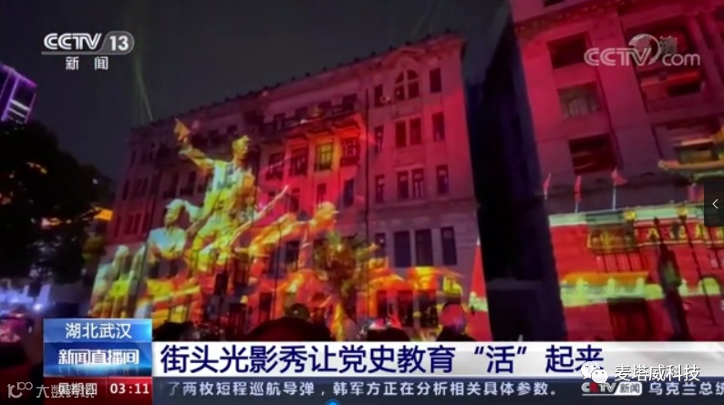 2021年3月19日,由麦塔威科技创意设计的大型城市级沉浸式光影秀在武汉江汉路上演。20万人在街头一同欣赏了精彩的表演,央视两次予以关注报道。