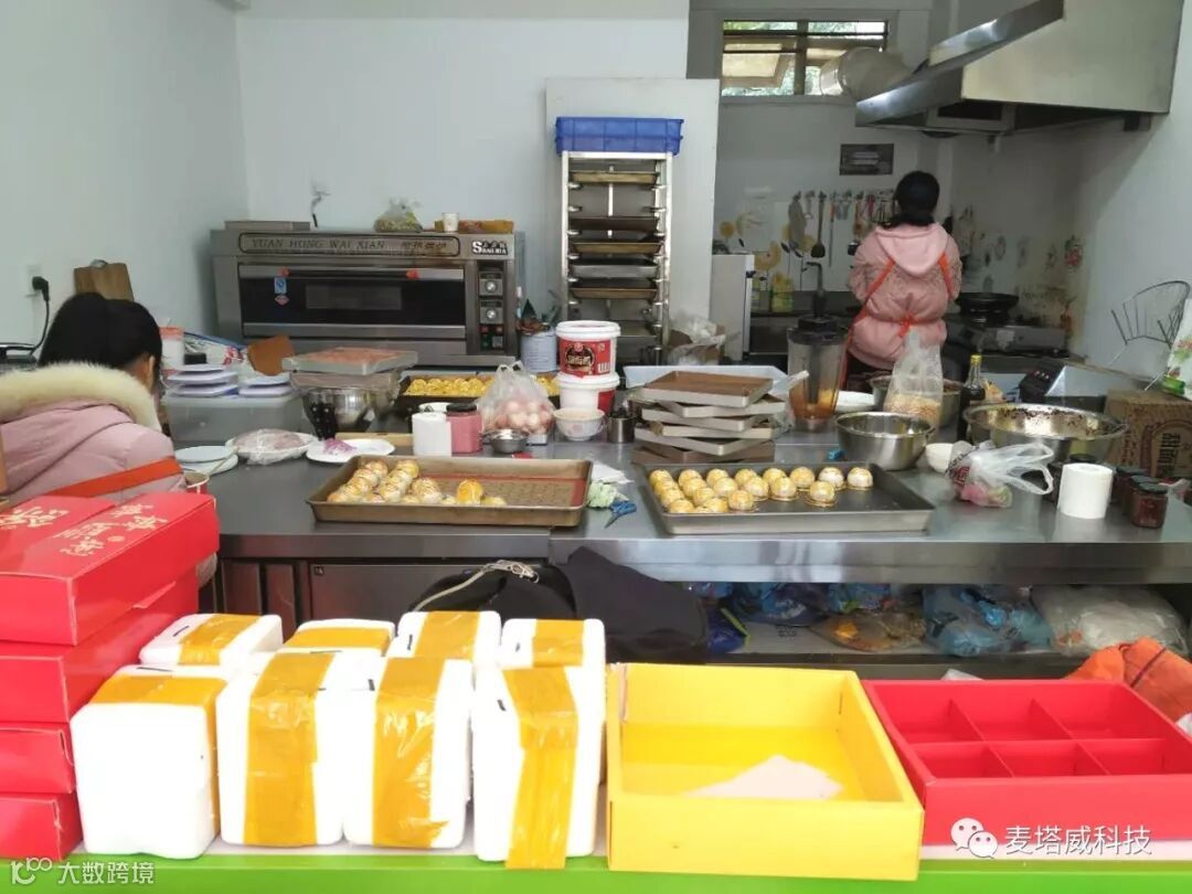 推开小小的玻璃门,远道而来的顾客将小店挤满。约40平方米的一间小店里,操作间占据大部分空间,前台的小桌子上堆满点心包装盒。