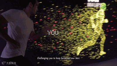 nike为了推广LunarEpic系列跑鞋,在菲律宾首都马尼拉建造了一个体育场,长约200英尺,形如一个鞋子,跑道内圈有LED屏幕墙,可以记录和追踪你跑步时的动态图像。在nike的这款跑鞋上,装有可以和LED屏连接的传感器。当你在跑步的过程中,它会利用超精准的射频识别技术,追踪每一位跑步者的运动。