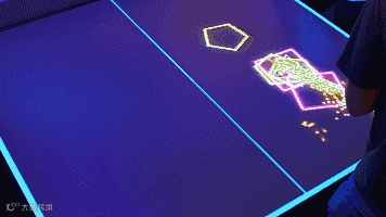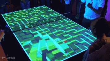 在英国伦敦,进行了一场乒乓球的数字化演变。他们将乒乓球桌转化为投影映射的互动游戏,定制系统内置了Touch Designer,结合乒乓球追踪技术和最新的交互式投影映射技术,在球桌上呈现出炫酷的视觉和实时互动效果。