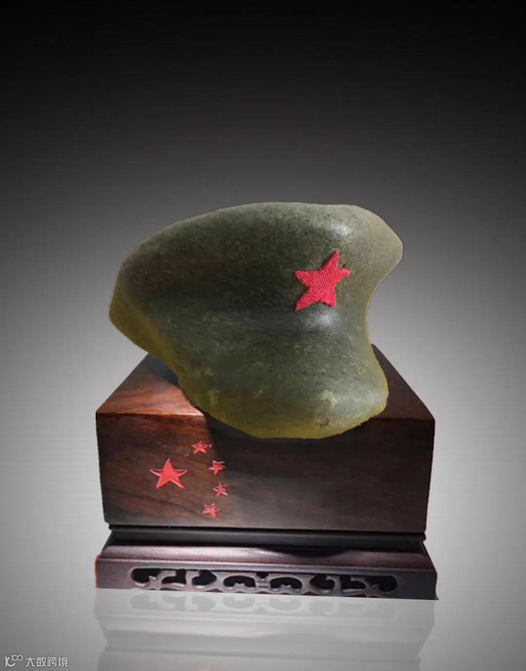 红军创建时期,条件异常艰苦,生产的军服式样也不完全一致,红军帽子的式样,有的部队戴八角帽,有的部队戴六角帽,不尽相同的军帽样式留下了独特的时代特征。此石不仅形韵神似,更有独特之处在于,帽顶呈现六角凸起,形态恰好符合这一时期的军帽独特式样之一。