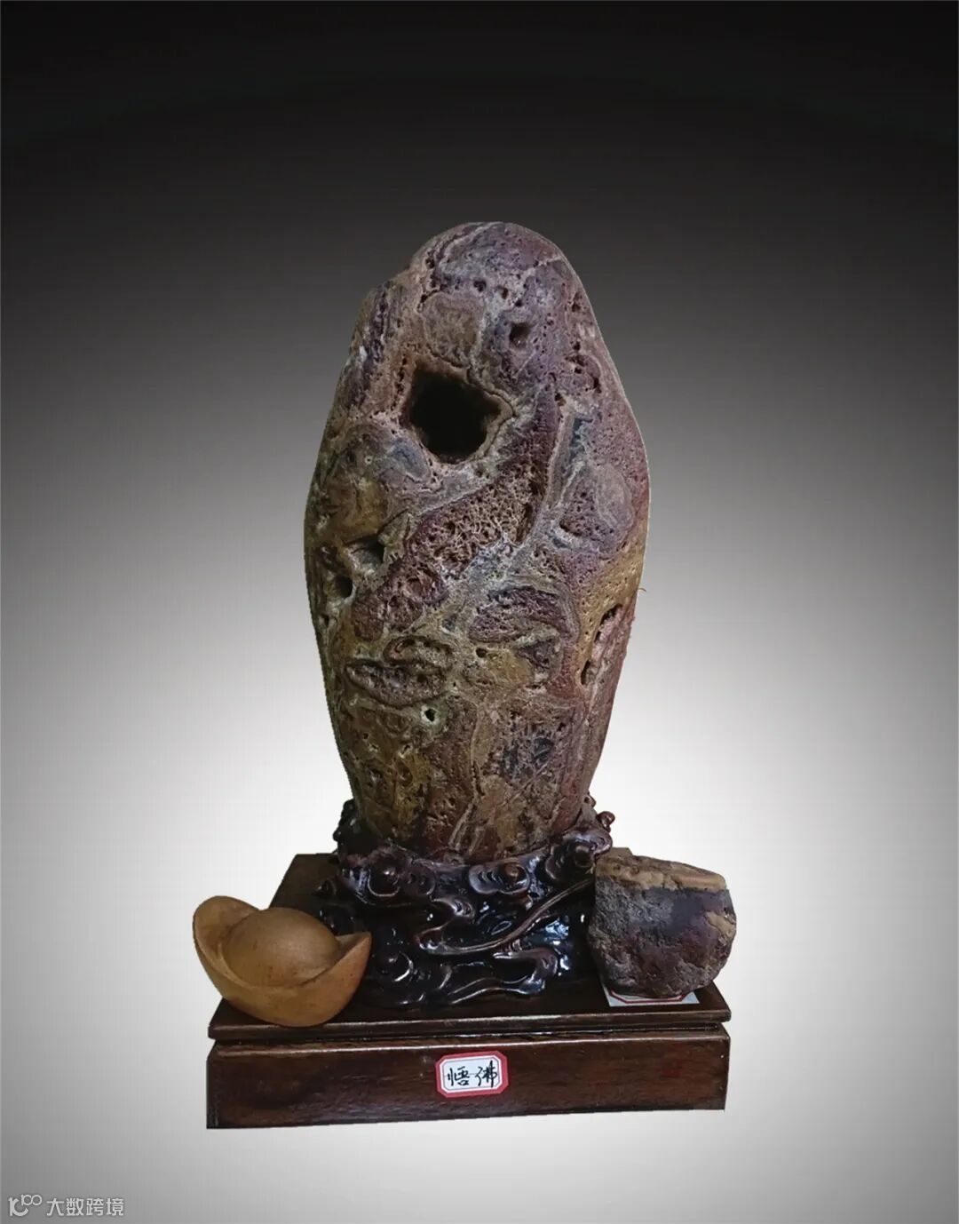 一石两看,双面皆美。藏品的双面主题为观者提供了丰富的审美体验、欣赏乐趣和文化解读。正面的老者象征着慈祥与智慧,背面的羊首则寓意着祥瑞与兴旺。两者相辅相成,让自然之美与人文之意相互融合,极大地提高了其观赏价值、收藏价值和经济价值。