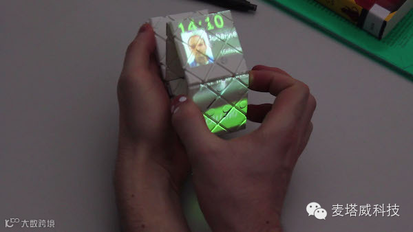 触屏已经成为移动设备的标配之一,但是在手机上推箱子的感觉远远没有在现实世界里面推箱子那么真实(触觉、视觉、听觉),操作起来还是没那么直观。为了让移动设备上的人机交互变得更加贴近现实世界,来自比利时 Hasselt 大学数字媒体专业中心的一个科研小组根据类似魔术拼图(Rubik’s Magic)的原理设计了一个新的概念变形手机模型,简单几步就可以从手机变身为平板电脑、手环、电子阅读器,大大提升了设备的灵活性。