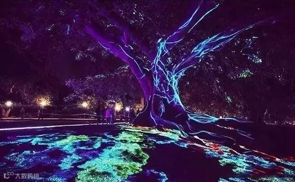 皇家植物园的魔法树,由Ample Projects创作,在一颗古老的无花果树上使用3D投影技术,让树木穿上“外衣”。
