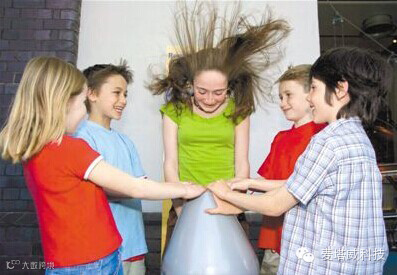 孩子们在英格兰布里斯托尔科学中心体验伯努利鼓风机