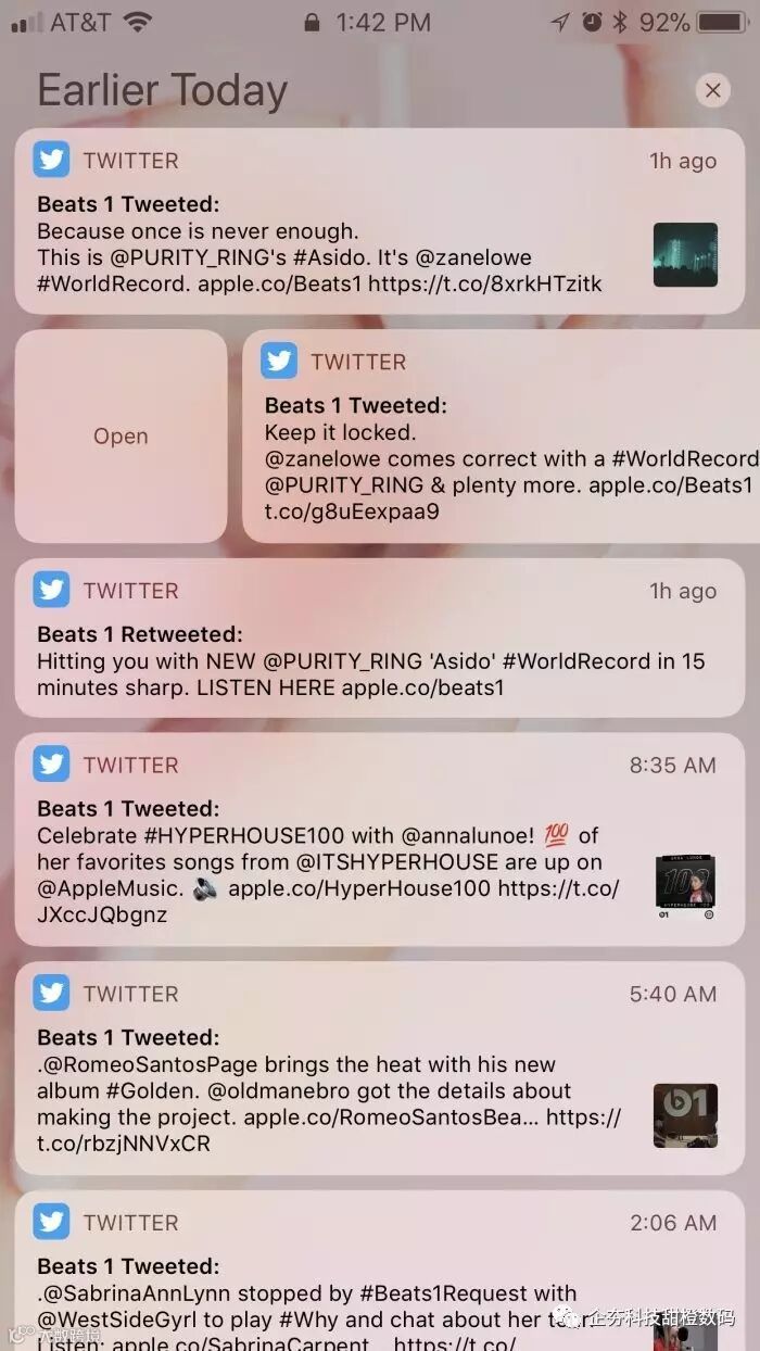 - 通知条目向右划动打开应用,向左划动观看/关闭