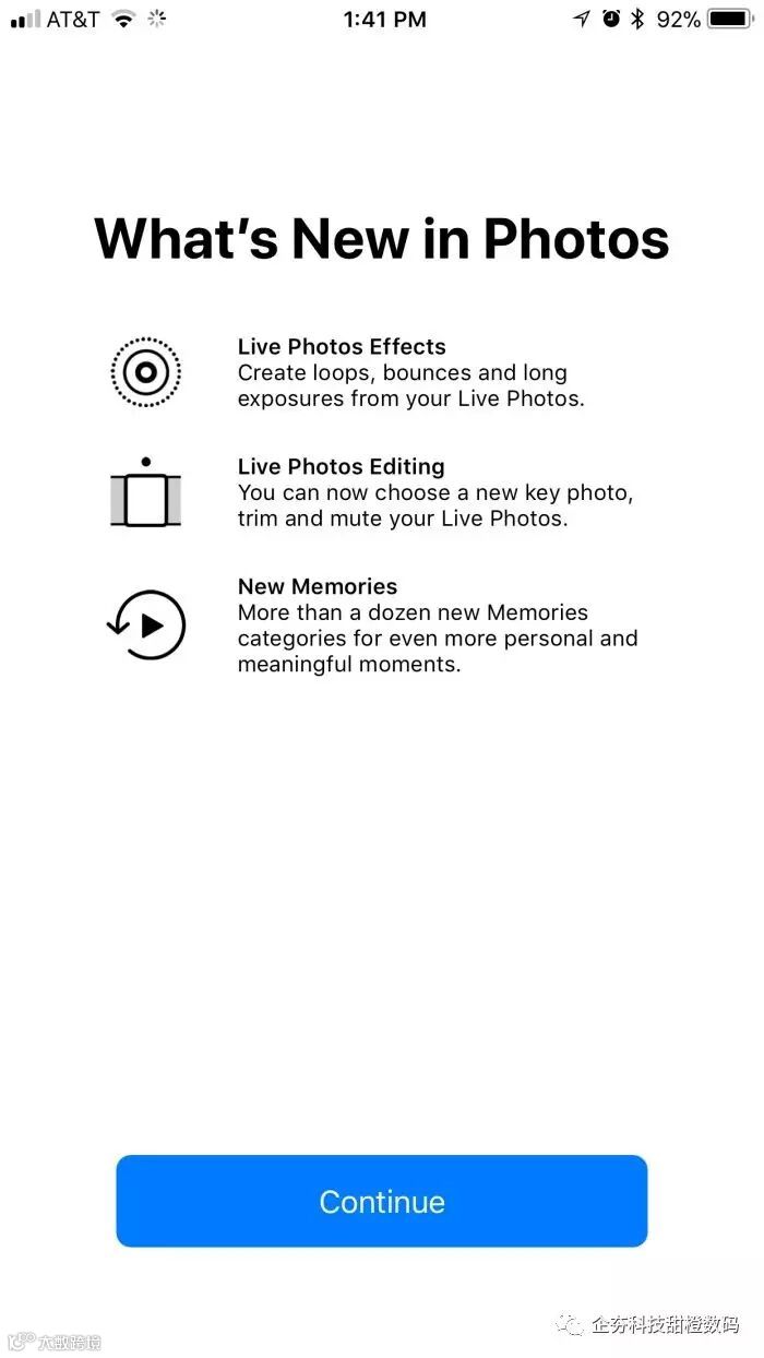 - 「照片」应用带来全新介绍页,详细描述 Live Photos 特效和编辑以及全新的回忆功能