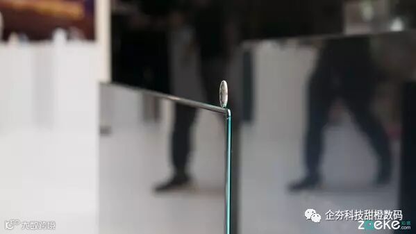虽然从我个人角度出发,我会更偏向于将这圈镶边涂成玻璃绿色,以在外观上追求“宛若一块玻璃而已”的设计理念。但以当前的蓝色镶边来看,所实现的视觉效果倒也是可圈可点。通过这一圈镶边,小米电视4的“薄”感就完全被渲染出来,从侧面看过去的时候也就更加惊艳。在官方给到场人员的小礼袋中,甚至还专门提供了一枚一元硬币,其用意自然也是如上图那般咯。