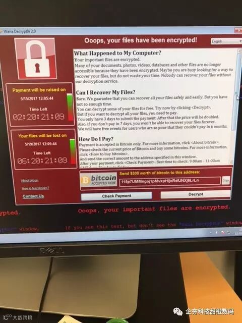 ——网络安全专家确认,这一恶意软件是勒索软件WannaCry的一个变种。全球各地的医院和企业员工已经在他们的电脑显示器上看到了一条勒索信息:“哎呀,你的文件已经被加密。”要想解锁文件,用户需要支付价值300美元的比特币。比特币是一种匿名数字货币,受到了犯罪分子的青睐。