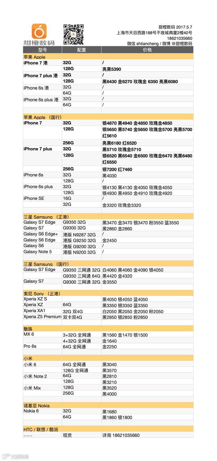 iPhone 7 及 plus 国行版周日价格稳定,部分配置小跌 1、20 元,港版机型稳定;索尼、三星等安卓机型今天没有变化。