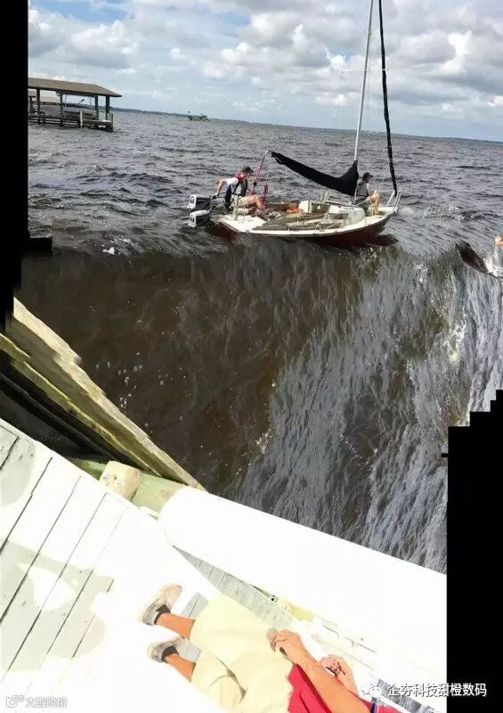 据了解,这张照片拍摄于当地时间上周三,当时一位名为Bobby的男子和他的朋友“G”正驾驶着小船,准备横穿圣约翰河。这时G的妻子站在岸边,打算给他们拍张照片留念。