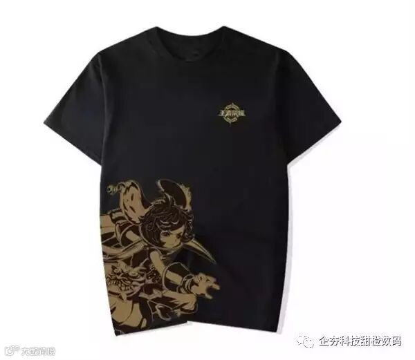 王者荣耀官方T恤采用烫金设计,暗金色勾勒出英雄轮廓,吸汗舒适的紧密纺棉面料。