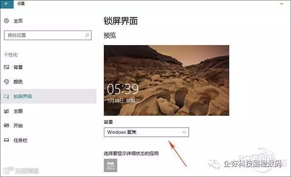 关闭方法:点击开始菜单→“设置”→“个性化”→“锁屏界面”,将“背景”更改为“Windows聚焦”以外的选项即可;