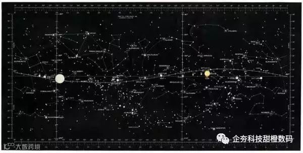 还有当年登月用的「星图」,它显示了离开地球轨道后太阳、月亮和星星的详细位置。