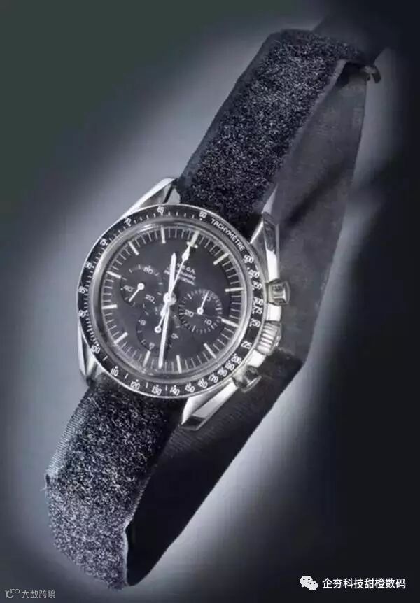 这是迈克尔·柯林斯在阿波罗登月任务时戴的欧米茄超霸计时码表。特制尼龙表带。
