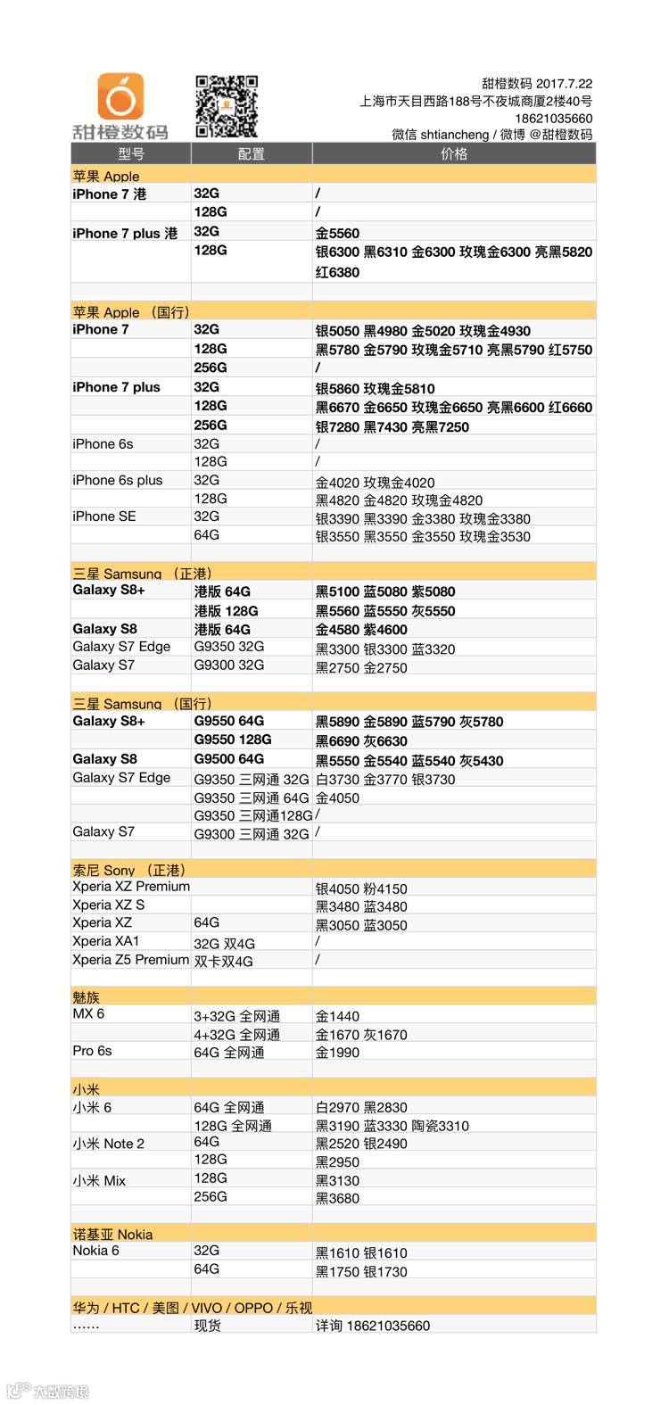 iPhone 7 及 plus 的低价维持不到一天,今天波动走势再次回头;三星 Galaxy S8/S8+ 国行版继续走低,幅度在 20-40 元之间;小米 6 和 Note 2、MIX 等机型价格小幅松动。
