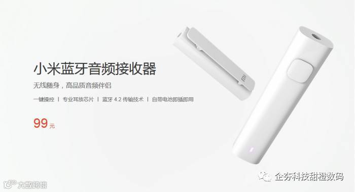小米今天正式发布了旗下的新品蓝牙音频接收器。和此前曝光的消息一样,这次发布的蓝牙音频接收器就是一款将有线设备变为无线的蓝牙设备,支持蓝牙4.2技术,最高传输距离为10米。该蓝牙音频接收器内置有97mAh电池,充电需要2小时左右,充满之后续航时间可达4-5小时。
