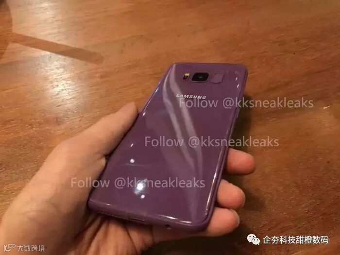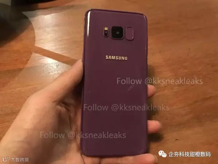 三星已经确定将于今年3月29日召开新品发布会发布Galaxy S8/S8+,在正式发布之前这两款旗舰的大部分信息都已经在网络上曝光。根据爆料信息,今年上线的S8新旗舰除了黑色和银色之外,还有白色/蓝色/金色等颜色,而在后续的问卷调查中还发现了紫色(Violet)配色,同Galaxy Note 7上的珊瑚蓝一样,是三星调剂的新颜色风格。今天微博爆料人士@KK低调在推文上曝光了紫色和亮黑色Galaxy S8的真机谍照。