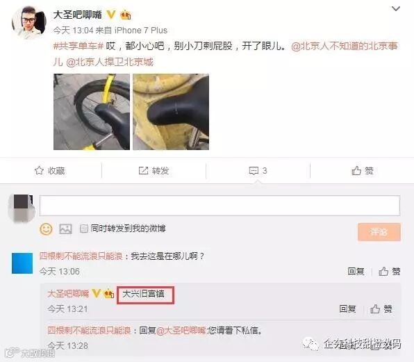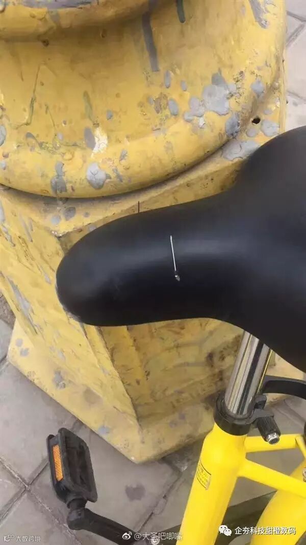 没想到,仅过1个月,有网友发现ofo单车的座椅上也被人插了针,而且是两根!爆料网友称发现地点位于北京大兴旧宫镇。