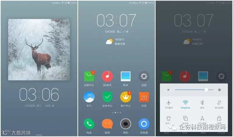 ZUI在设计上非常简洁,扁平化的多色彩图标、默认淡雅、素净的主题和壁纸,橱窗式锁屏界面设计笔者还是很喜欢的,看起来非常美观、简洁。这些系统设计方面的特点使得ZUK Edge有一种身着白衬衫、帆布鞋的文艺青年气质。而且在系统优化层面,ZUK做的也是不错的。