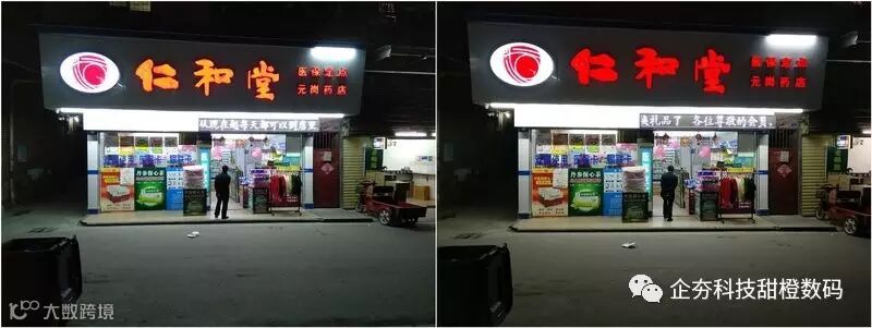来到夜景部分,从这组样张中可以看到,联想ZUK Edge在夜景部分仍然纯在偏色的现象,把红色的店名直接还原成了黄色,放大样张看,一加3得益于1600万的高像素,广告牌上的字依然清晰可见,而联想ZUK Edge则显的有点吃力了,一加3在细节方面明显比联想ZUK Edge还原的更好。