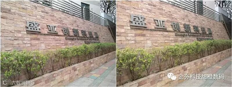 从这组白天的样张看,联想ZUK Edge的成像风格有点偏暖,照片有点微微泛红,把原本偏黄的墙壁拍成了红砖的感觉,反观右边的一加3就很好的还原了墙身本来的颜色。