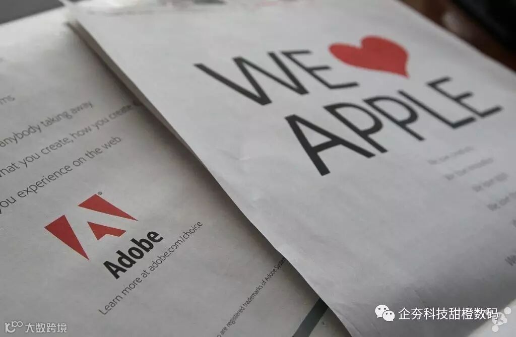 iPhone 和 iPad 意外地被卷入了一场关于互联网标准的战争,乔布斯认为 Adobe 的 Flash 用作网络交互内容来说实在太慢且不安全。所以苹果的移动设备并没有支持 Flash,Adobe 或许是意识到了苹果所能够带来的业务影响,后来 Adobe 在一本杂志的广告上恳请苹果重新考虑(使用 Flash),但最终还是徒劳无功。