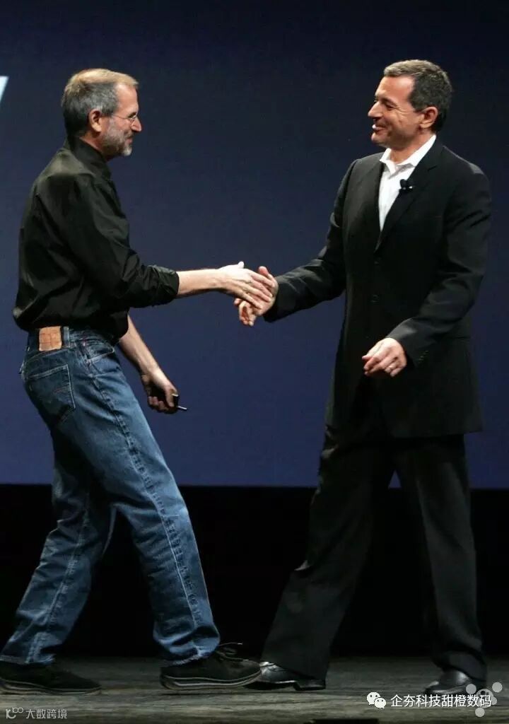 也正是在这个时候,乔布斯的身体状况每况愈下,不少人都开始注意到,乔布斯开始日渐消瘦。图为 2006 年苹果发布会,乔布斯和迪士尼 CEO 罗伯特·艾格握手。