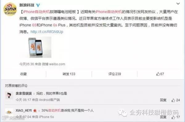 一是 iPhone 6 和 iPhone 6s 系列手机自动关机原因,手机电池是否存在问题。