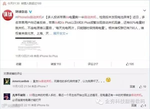从两个月前开始,关于 iPhone 6s 自动关机无法开机一事在网络上闹得沸沸扬扬,不少网友在微博,微信等平台上面抱怨,自己的 iPhone 手机在电量还有 20%--40% 左右就异常自动关机了,要插上电源才能开机,以为只是很偶然的个例,但是当发到社交网络上之后才发现,原来不少用户也出现了和自己相同的情况,而且以 iPhone 6、iPhone 6s 系机型占大多数。
