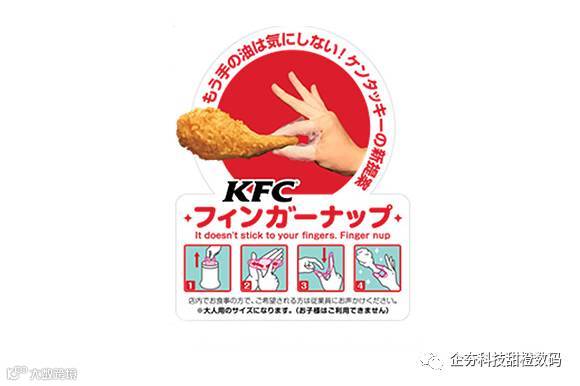 在中餐馆吃猪蹄、大骨头这些菜的时候,店家常会备好指套,方便上手抓取,而且用完免洗,效率很高。但有趣的是,肯德基、麦当劳这类炸鸡快餐没有类似配备,你要不餐前餐后及时洗手,要不就用餐纸代替。据RocketNews报道,KFC日本公司就推出了新的用餐配件,简称“指套”,顾客可以在柜台前和抽取吸管一样随时取用。对于爱干净的顾客来说,这样吃炸鸡、薯条就不会把手弄油了。