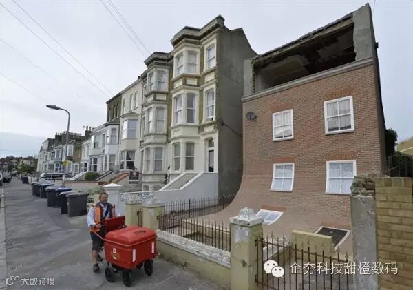 这栋“脑洞大开”的房子位于英国马盖特。它是英国知名艺术家亚历克斯·齐内克(Alex Chinneck)的作品,其定位是一件公共艺术品。
