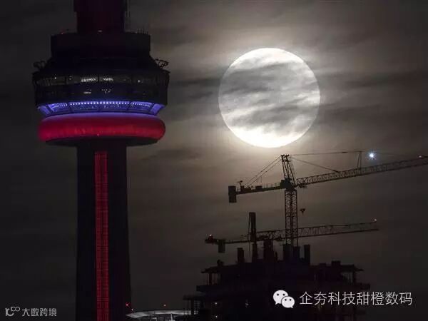 超级满月与加拿大国家电视塔的合影。