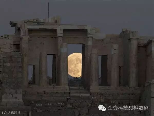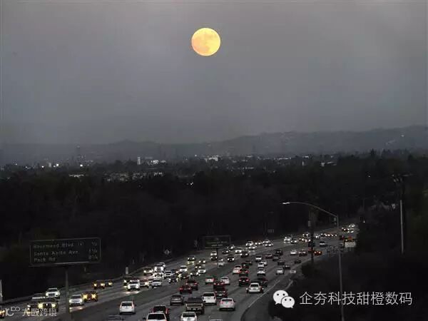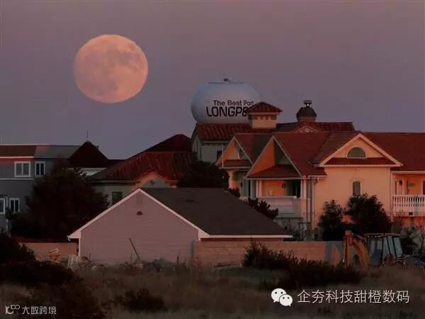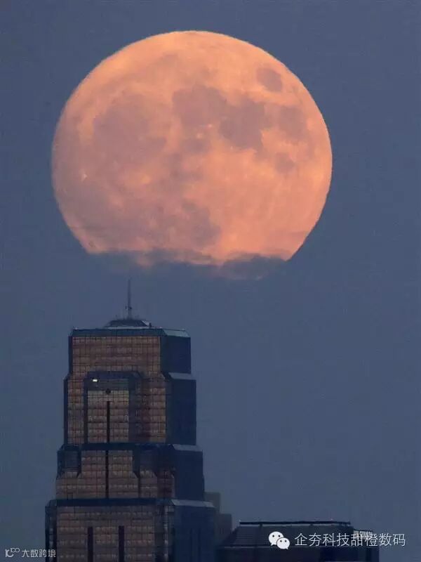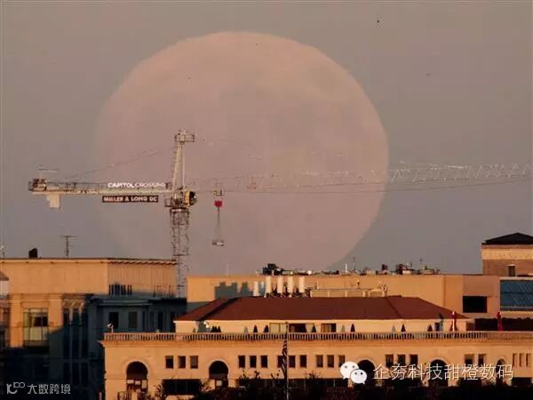 黄昏时分,超级月亮在华盛顿市中心初露姣容。
