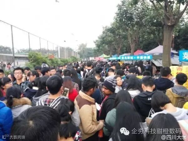 2016年11月15日报道,四川成都,据四川大学官方微博报道,其江安校区取快递的现场人山人海。据悉,在4天前,是中国的双11购物节,这一天,许多网络商家会进行大规模促销活动。