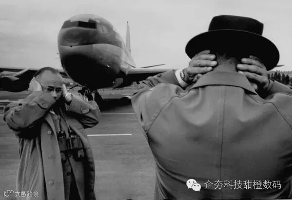波音707是第一架服役的波音喷气式客机,于1954年正式首飞。图中,负责该机设计的机械师和工程师同时捂住了耳朵,因为喷气式引擎声音实在是太大了。