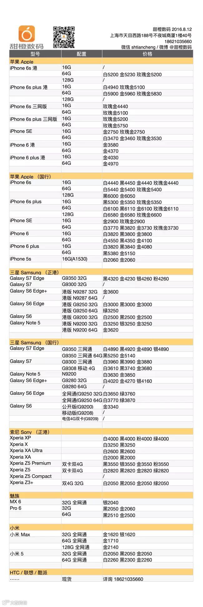 iPhone 6s 及 plus 港版机型的 16G 款供货不足,64G 款价格回落;iPhone SE 价格抬头,而 iPhone 6 及 plus 的港版国行版则明显走低,特别是国行版,降价幅度较大;三星、小米等安卓手机稳定。