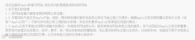 在爱锋派的页面清清楚楚地写着以下条款,明确表示爱锋派是独立的第三方,所有回收行为和苹果没有任何关系。