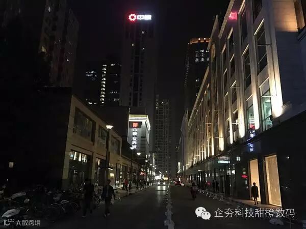 将夜拍的场景缩小到一条街道,可以发现一加3的ISO值降到640,观感上不如iPhone 7样张明亮,但是对于噪点的控制和iPhone 7区别不大。