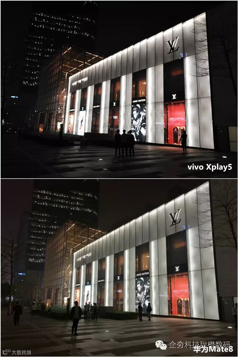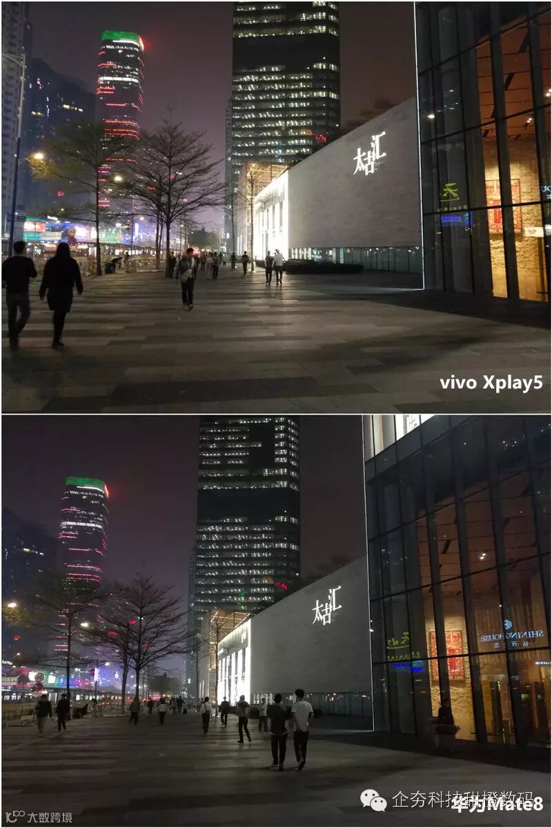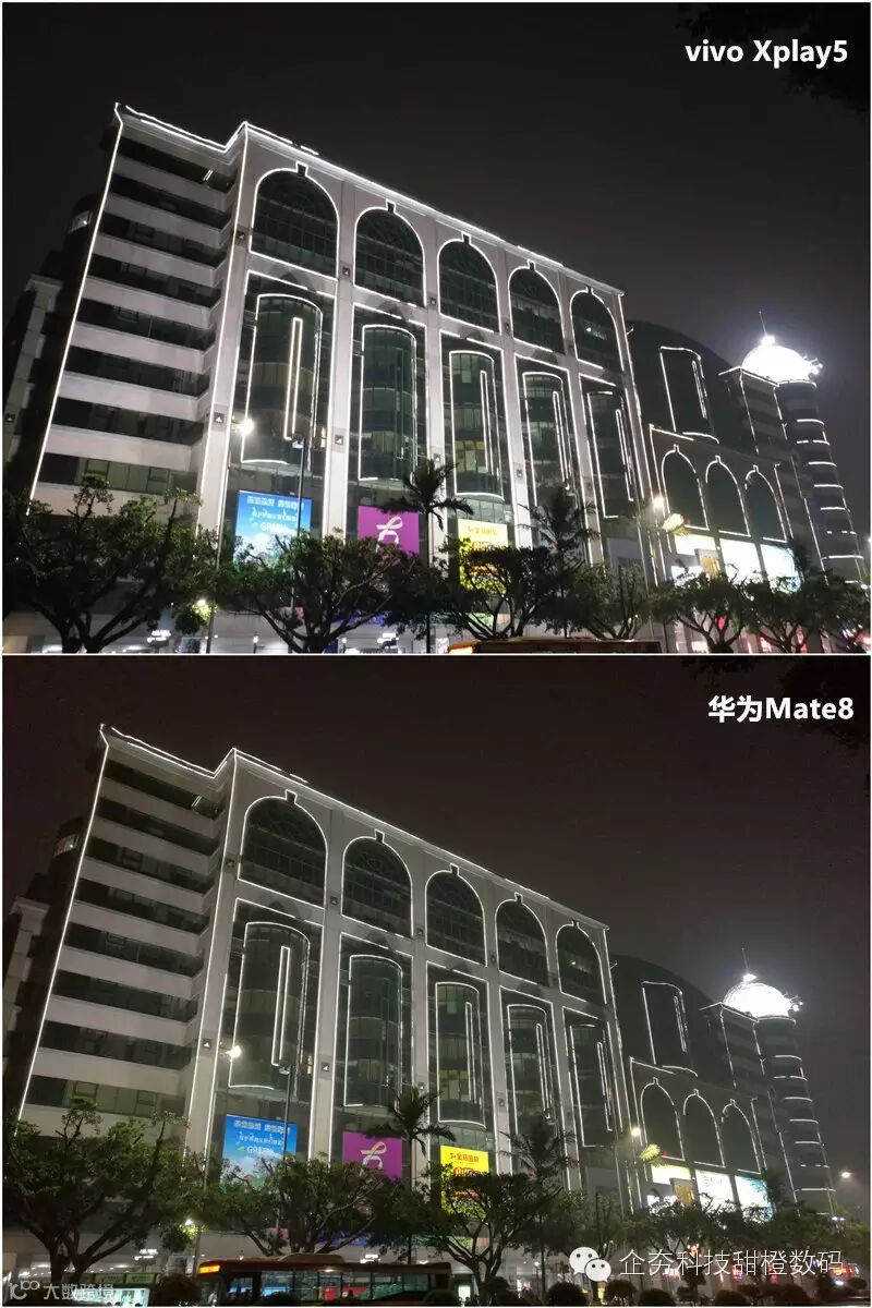夜间样张能进一步表现手机拍照的解析能力,在这一环节上vivo Xplay5则走向在了前列,无论是早噪点的控制能力还是对灯光的表现相对来说都更加出色,整体样张在暗处细节方面表现也更加丰富,反观华为Mate8整体样对光线的把我并不是很好,对噪点的控制也比较一般。