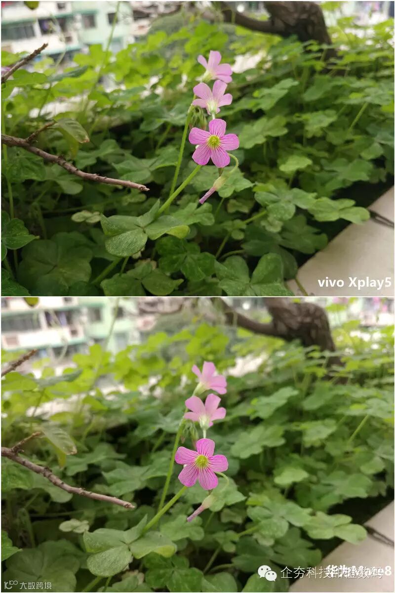 两者同样采用F2.0的大光圈,观察下侧图片虚化发现,Mate8的背景虚化稍好于Vivo Xplay 5。而细节上,Vivo Xplay 5的解析力依旧强于华为Mate8,微距的植物在mate8的样张中涂抹感严重,在Vivo Xplay 5上的还原,细节更多。